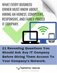 Even if you aren’t ready to make a change right now, this book will give you important questions you should ask your current IT person to make sure that their policies, procedures and service standards won’t leave you vulnerable to expensive problems, lost data, viruses, hacker attacks and a host of other problems.